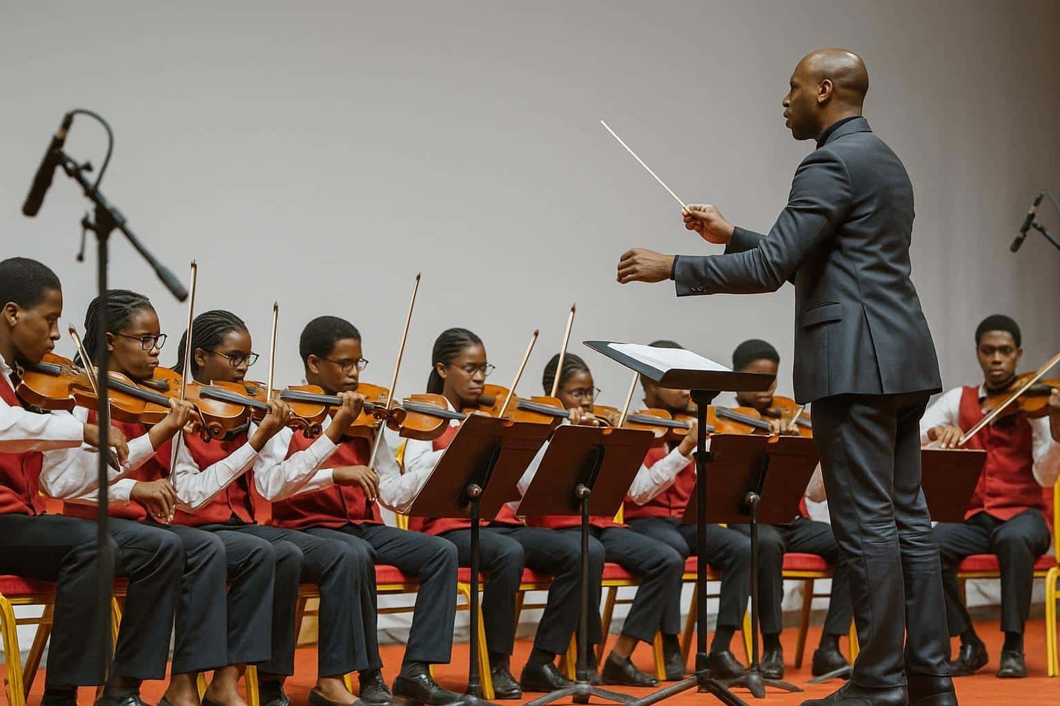 Le maestro Josias Ngahata porte la baguette fondatrice. Lui-même formé au Conservatoire de Brazzaville avant un passage à l’Académie de Dresde, il défend l’idée que « l’orchestre apprend la discipline, l’écoute et la confiance, des valeurs qui rayonnent bien au-delà de la scène ».